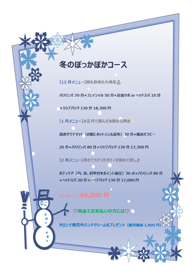 ⛄冬のぽっかぽかコース(全130分コース)⛄