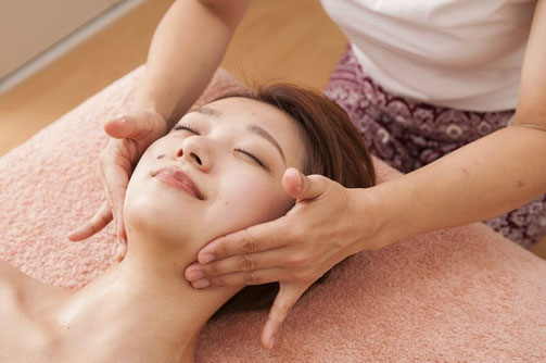 ⇒食いしばり、噛み癖、年齢に伴い下垂気味な顔筋を引き上げるオールハンドマッサージ。